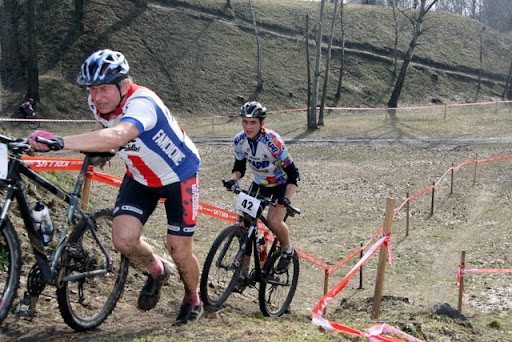 Wyszedłem z domu przed 7, dojazd do Mrozów pociągiem, na szczęście była ze mną Magda. Piękna pogoda, słoneczko i lekko na plusie. Ładna trasa, dobrze przygotowana, w większości przejezdna, dopiero druga pętla dała w kość - rozjeżdżony topniejący śnieg zachowuje się gorzej niż najdrobniejszy piasek. Na pierwszej pętli mały defekt - odkręciło mi się koło, nie mam pojęcia dlaczego, gość którego wyprzedziłem tuż przed przymusowym postojem uciekał mi później prawie 10km:) Na mecie przegrałem finish:( Trasa miejscami błotnista, dużo wody, nie było łatwo, ale zabawa przednia:) Był nawet całkiem fajny podjazd:) Co do organizacji to bufety super (batony i ciepły izotonik) na mecie i przed startem kawa i herbata, na mecie dodatkowo ciasto, izotonik, smaczna grochóweczka bez ograniczeń, karcher (oj przydał się!), ciepły prysznic i to wszystko za 35pln - dostałem jeszcze za opłacenie całego cyklu z góry skarpetki i czapeczke:)